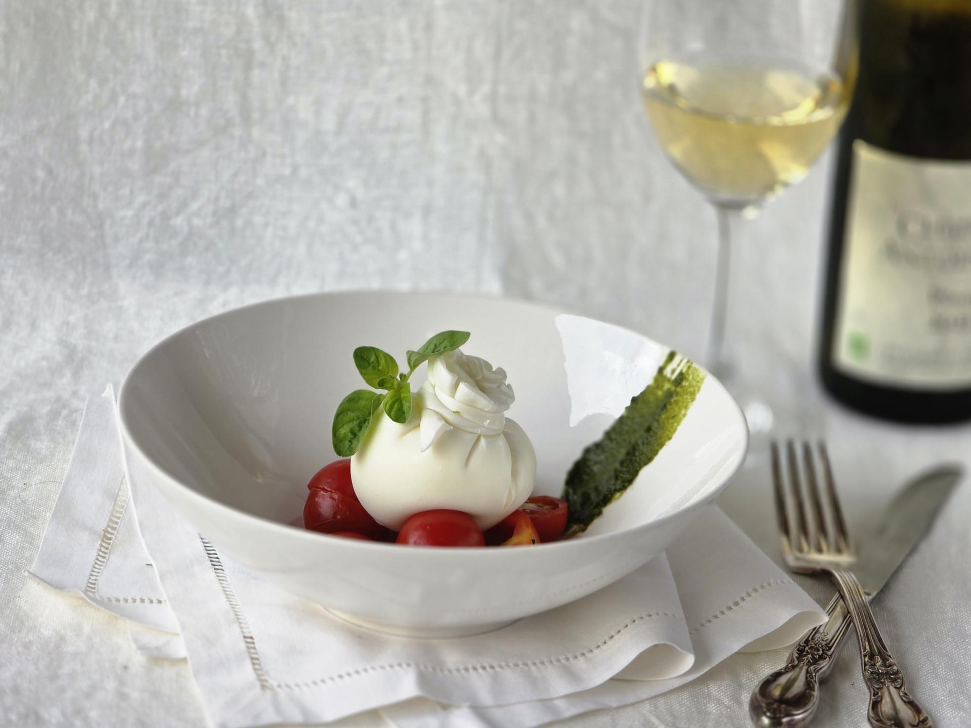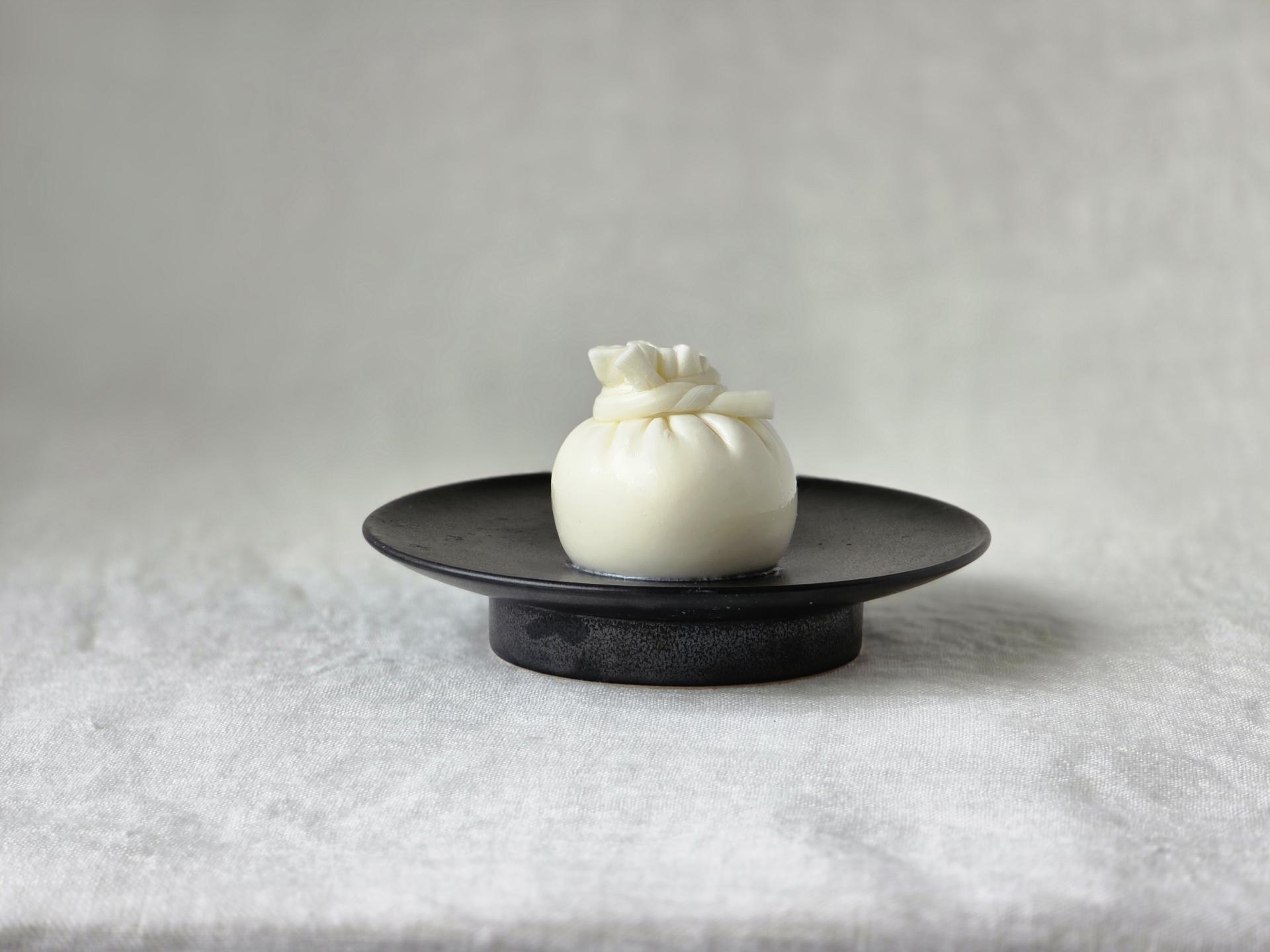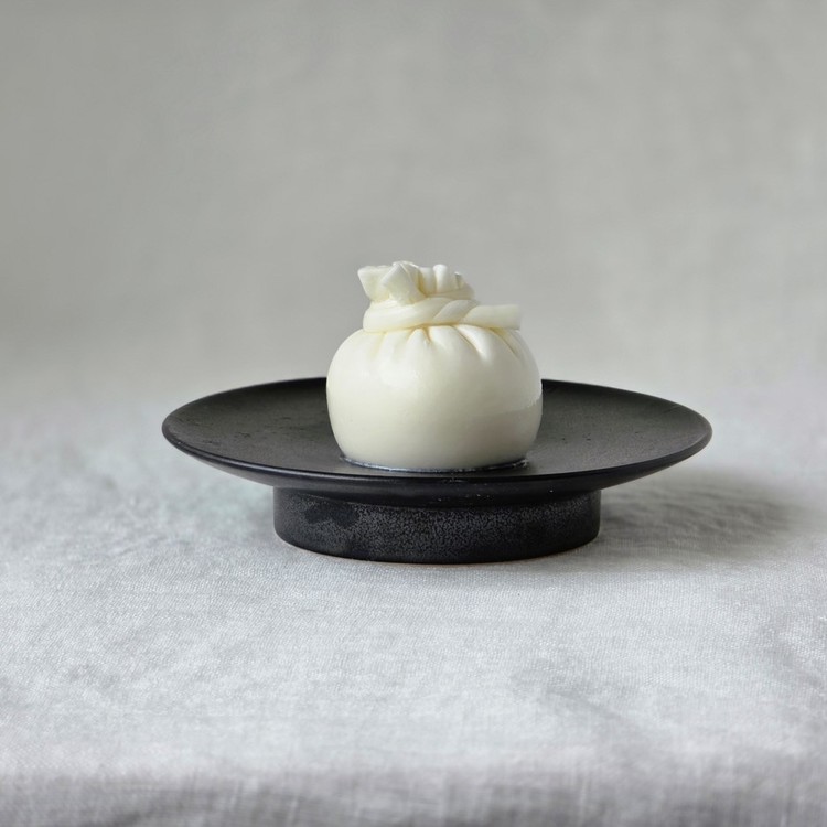 만두피처럼 얇게 편 모짜렐라 속에 모짜렐라와 고급 생크림을 섞어 만든 스트라치아텔라를 넣고 복주머니처럼 묶어 매일 아침 만듭니다.