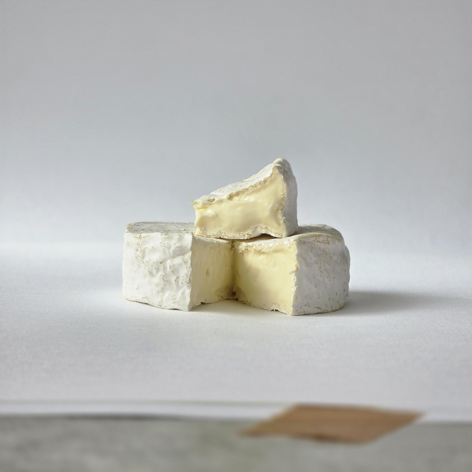 우유에 유산균, 흰곰팡이균과 렌넷 그리고 프랑스산 Elle&Vire 생크림을 넣어 커드를 만들고 커팅 후 커드를 적당한 텍스쳐와 pH로 만들어 동그란 몰드에 형태를 잡습니다. 다음날 소금물에 넣었다가 빼낸 후 숙성실에서 일주일 이상 두면 솜처럼 예쁜 흰곰팡이가 피어납니다. 치즈용 종이에 포장하여 냉장 보관하면서 계속 숙성을 진행하며 포장 후 10일~20일 이상 지나면 (만든 날로부터는 20일~30일 정도 후) 가장 맛있는 맛과 텍스쳐가 나타납니다.